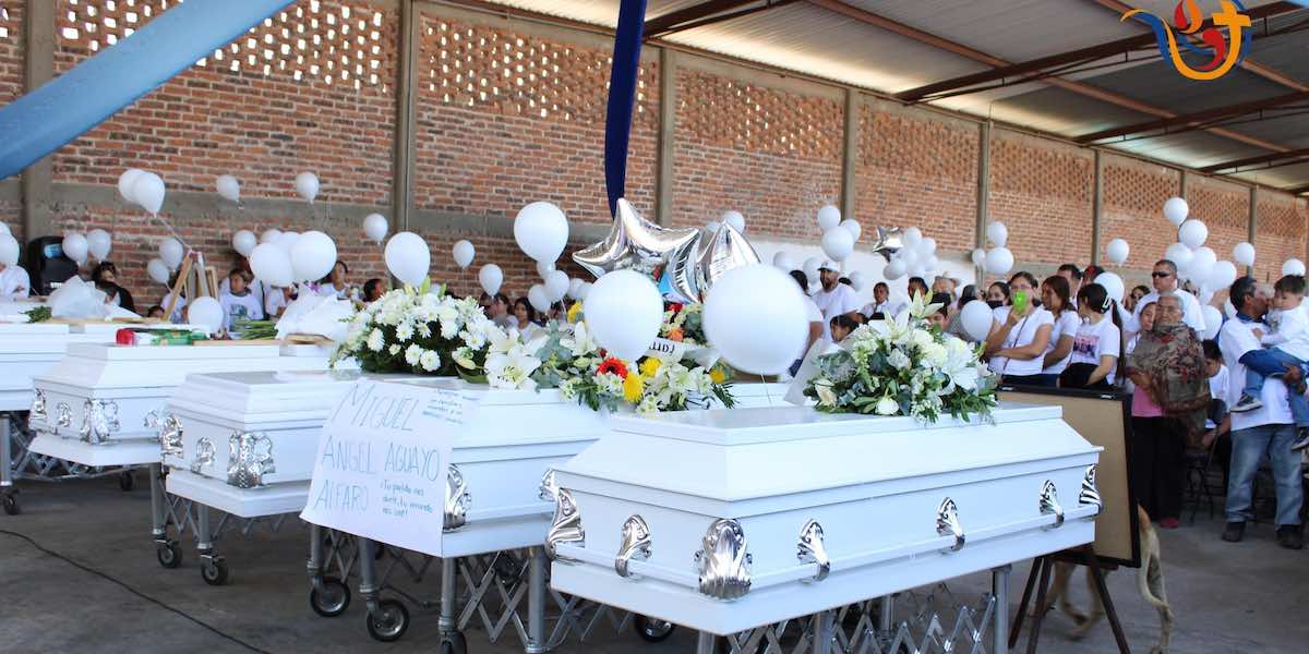 Féretros de jóvenes asesinados en Salamanca, Guanajuato. Foto: Emaús Semanario. Diócesis de Irapuato