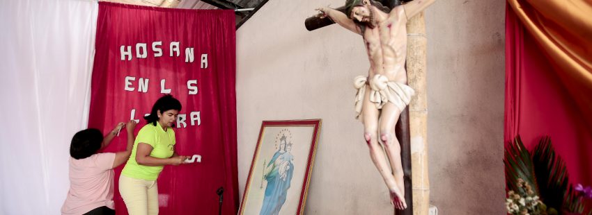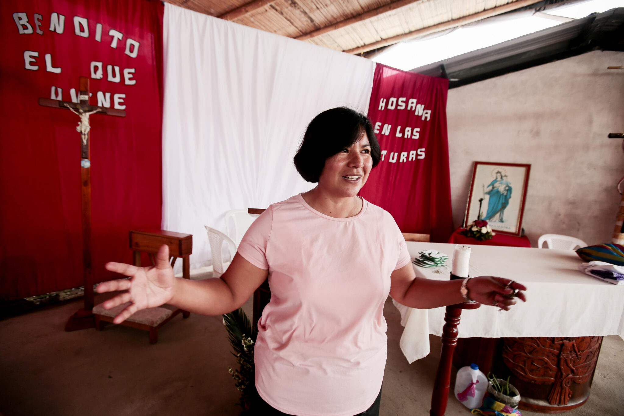 La religiosa Juana del Rosario en un improvisado templo que han levantado en Pedernales, ciudad castigada por el terremoto/EFE