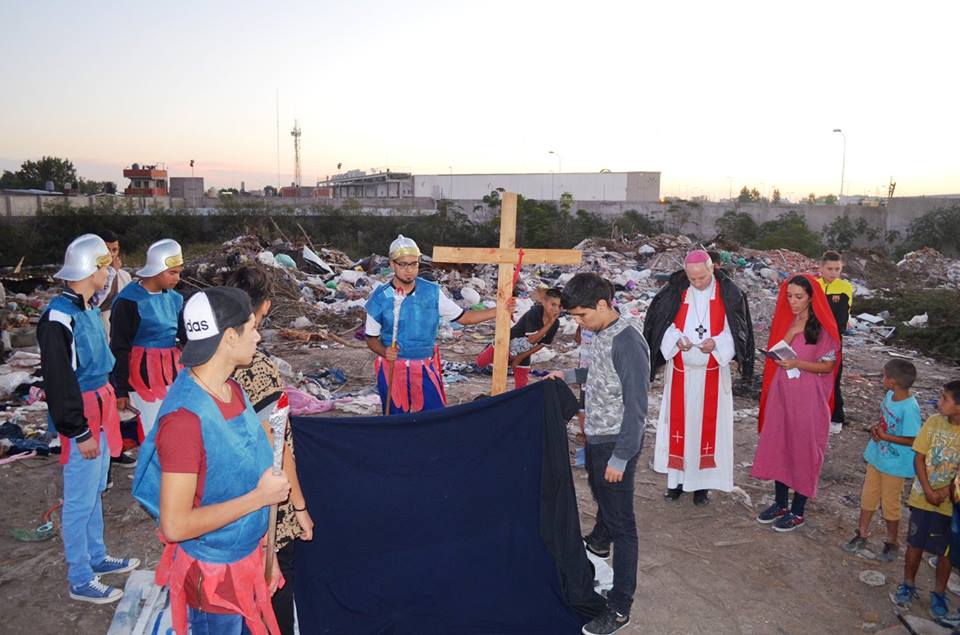 En el último Viernes Santo, Lugones junto a jóvenes de la comunidad “Alegría monfortiana”. / Periódico Eclesia