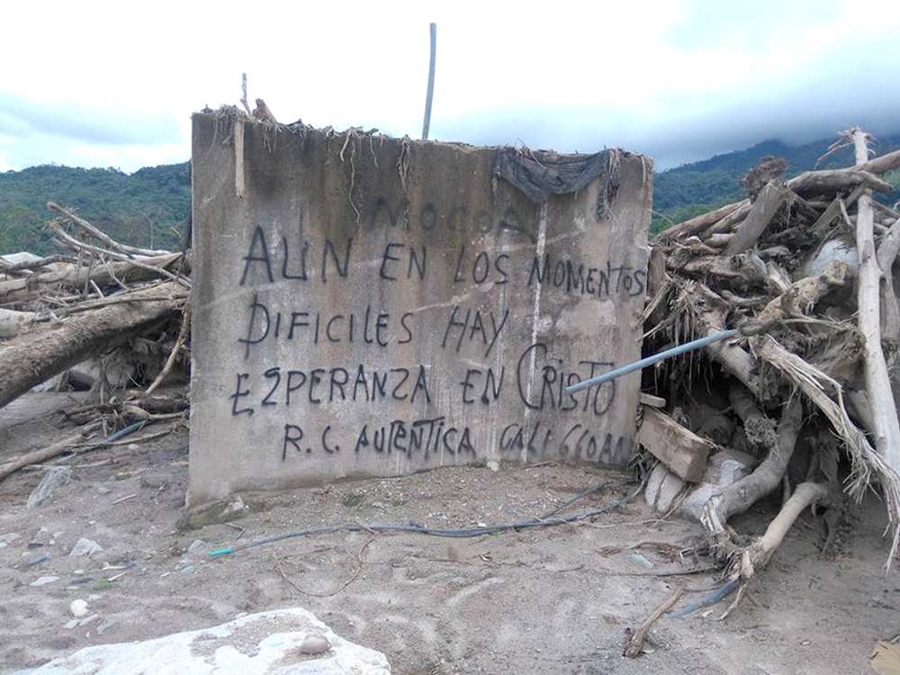 Hasta hace poco las retroexcavadoras seguían removiendo las enormes piedras que la avalancha trajo sobre barrios enteros de Mocoa. Algunas casas habían sido echadas al suelo, mientras otras, semi-destruidas, seguían ante la mirada de la gente como un testimonio mudo de paredes elocuentes. “Aun en los momentos difíciles hay esperanza…” fue el mensaje captado entre las ruinas por una cámara de celular en días pasados. Coinciden tales palabras con la experiencia vivida por Teresita Cano, quien ha dicho que, si bien tanta tristeza lo deja a uno sin piso, “la realidad no nos puede dejar quietos”.