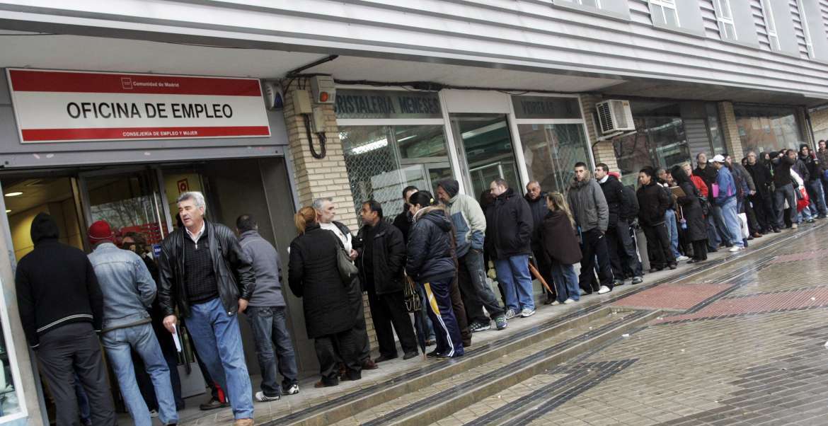 People line up to enter a government job centre in Madrid March 3, 2009. Spanish joblessness reached a 13-year high of 3.48 million in February and some analysts expected the total to hit 4 million by summer as recession-hit firms axed workers at a brutal rate. REUTERS/Susana Vera(SPAIN)