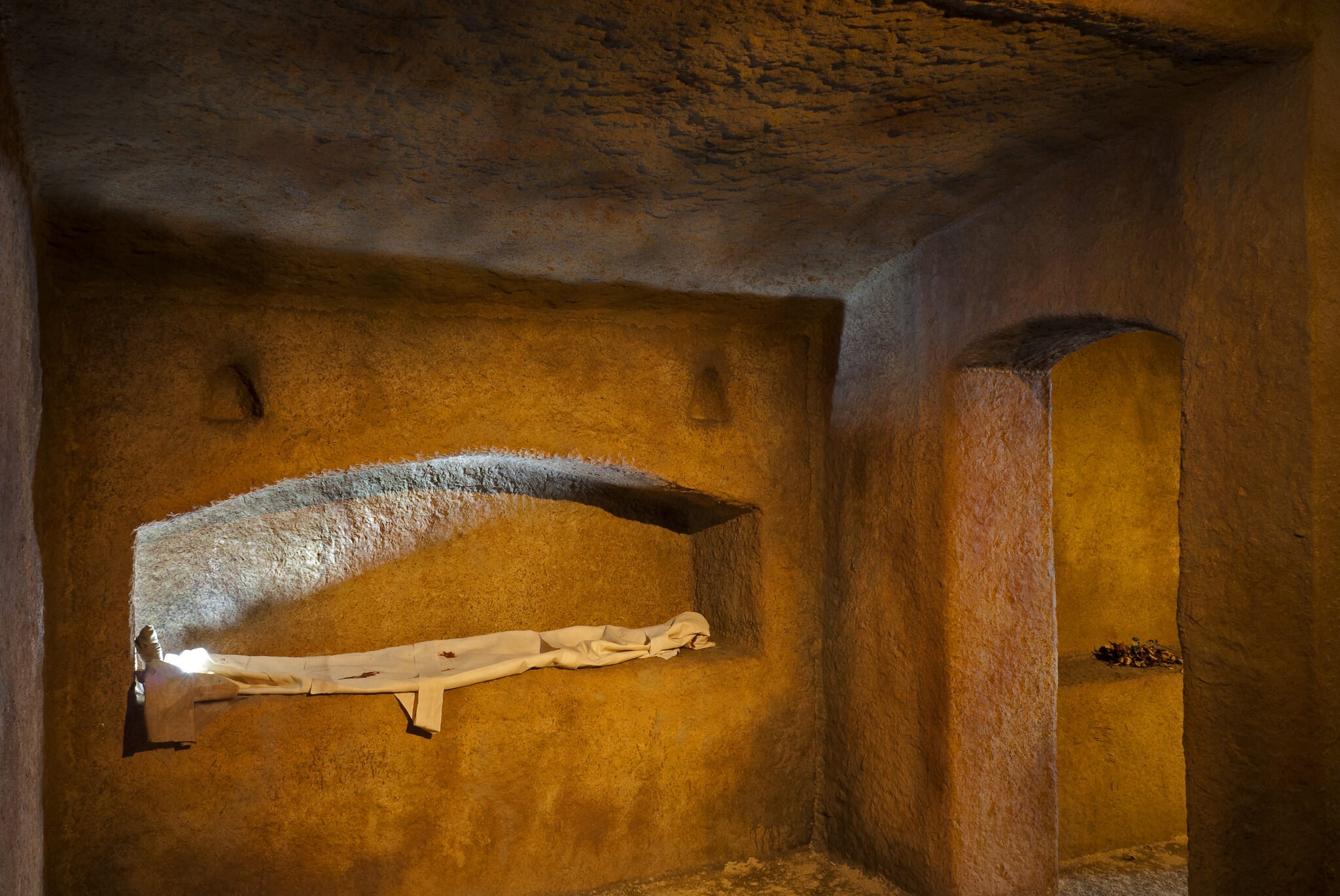 La exhibición se divide en 12 salas, entre las que destacan la sala forense, la científica, y otra más donde se encuentra una réplica del Sepulcro de Jesús.