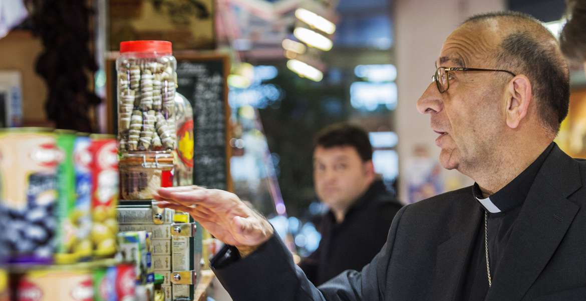 Monsenyor Joan Josep Omella, Arquebisbe de Barcelona, Mercat de Santa Caterina, Barcelona 10.06.2016 Fotografia Pere Virgili