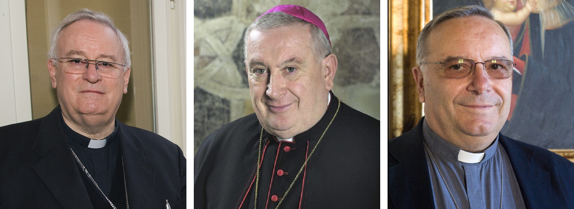 El papa Francisco tendrá que elegir al nuevo presidente de la Conferencia Episcopal Italiana (CEI) entre el cardenal Gualtiero Bassetti, obispo de Perugia (a la izquierda en la imagen); el obispo Franco Giulio Brambilla (centro), titular de la diócesis de Novara y el cardenal Francesco Montenegro, arzobispo de Agrigento (a la derecha). Así lo han elegido hoy martes 23 de mayo los obispos italianos, que están celebrando su 70ª asamblea plenaria esta semana en Roma.