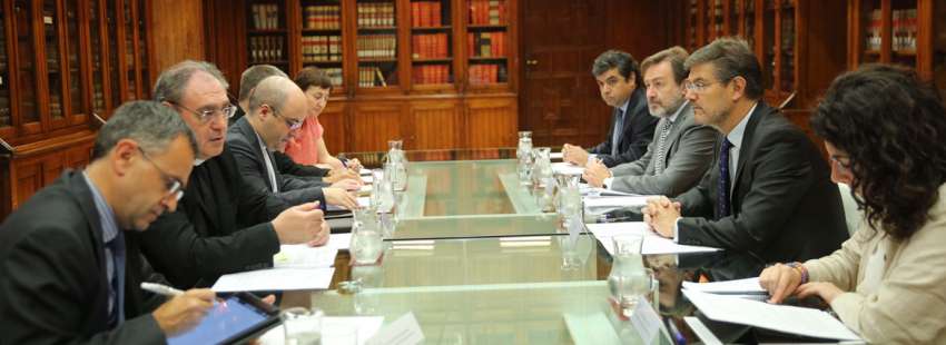 Finalmente, Catalá ha informado a los representantes de la CEE –entre los que se encontraba el vicesecretario de Asuntos Generales, Carlos López; el de Asuntos Económicos, Fernando Giménez Barriocanal; el director de la Comisión de Educación, José Miguel García; y el director nacional de Obras Misionales Pontificias, Anastasio Gil– de los proyectos en los que está trabajando el ministerio para conmemorar, en el último trimestre de 2017, el 25 aniversario de la firma de los Acuerdos de Cooperación con evangélicos, musulmanes y judíos.