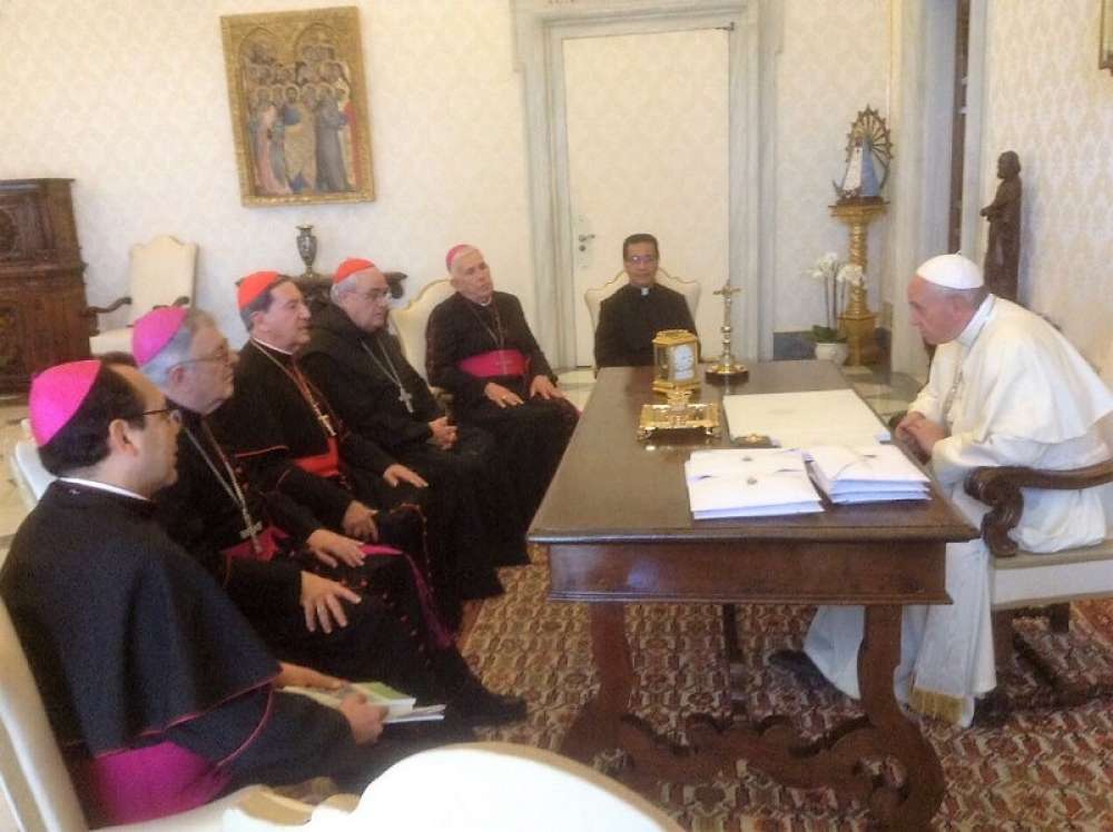 Según se había previsto, los obispos latinoamericanos fueron recibidos por Bergoglio –hijo natural del CELAM– al mediodía en su biblioteca privada.