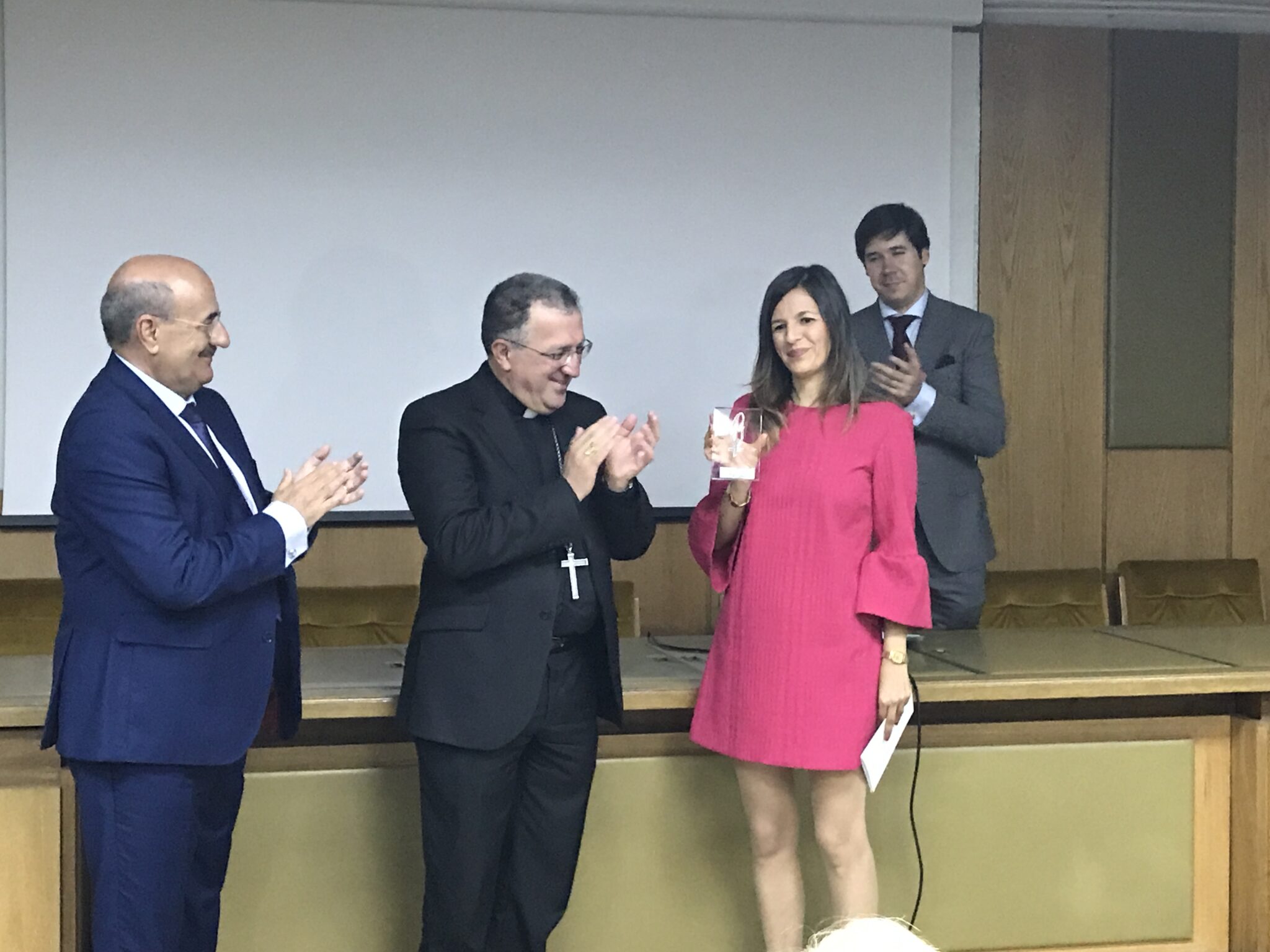 El secretario general de UCIP-E, Álvaro de la Torre, recordó que el jurado decidió premiar a Irene Pozo por “su compromiso profesional con la Iglesia”, en tanto que “imprime a su labor profesional un nítido sentido cristiano y evangelizador”.