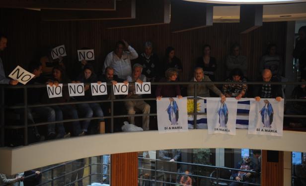 Ante los comentarios, a nivel informal, de que no habría suficientes votos a favor de la iniciativa, la Iglesia reforzó su campaña. En un primer momento consistió simplemente en algunas declaraciones públicas del cardenal y de una serie de conversaciones personales con distintos ediles, buscando “sensibilizar” sobre el tema en cuestión. Pero en el último tiempo se sumó a ello una serie de spots audiovisuales, con el hashtag #siamaria, mostrando testimonios de personas y opiniones de distintos referentes culturales e intelectuales. Sin embargo, se comentaba también que el Frente Amplio, el partido de gobierno con mayoría en la Junta, haría de la votación una cuestión de “disciplina partidaria”, obligando a todos sus representantes a votar negativamente en conjunto. Si bien varios ediles del oficialismo no estaban en contra de la iniciativa o, incluso, la apoyaban, el proyecto no tenía chances de ser votado si se convertía en una cuestión disciplinar, que fue finalmente lo que sucedió: la propuesta fue rechazada con 17 votos en contra y 14 a favor.