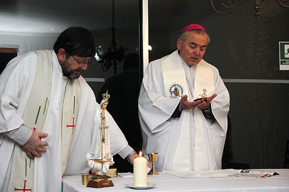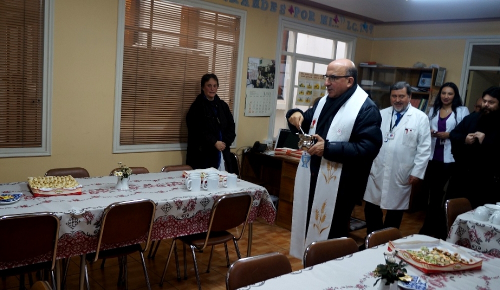 El obispo de Concepcion, Fernando Chomalí, bendijo la sala vecina a la capilla del Hospital Guillermo Grant Benavente.