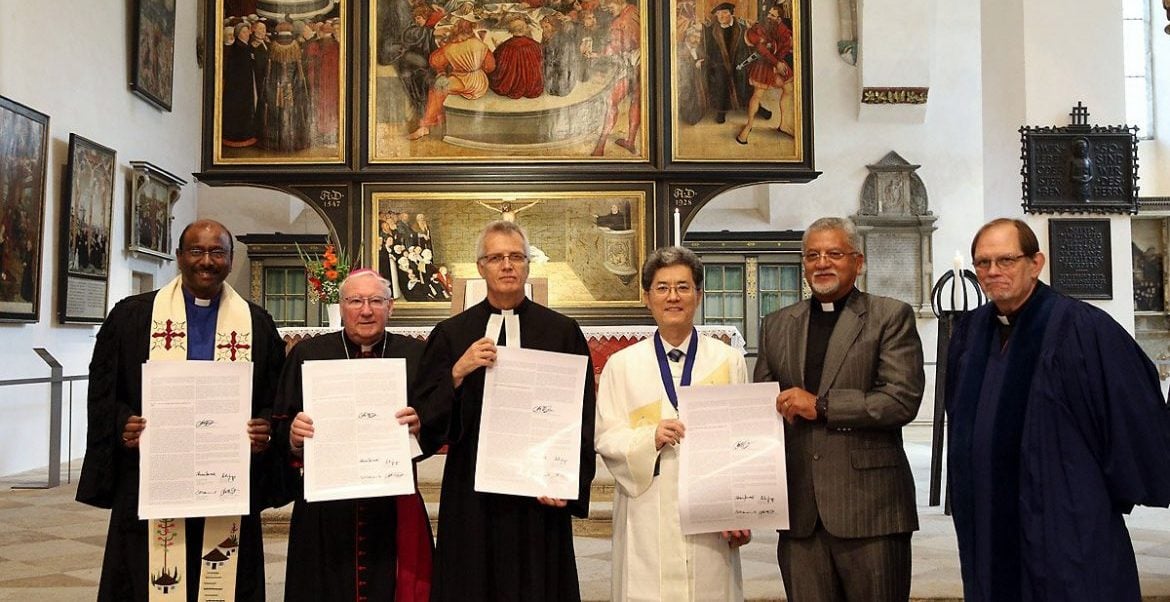 Representantes de las diferentes confesiones cristianas, en la firma de adhesión de los calvinistas a la Doctrina de la Justificación el 5 de julio de 2017