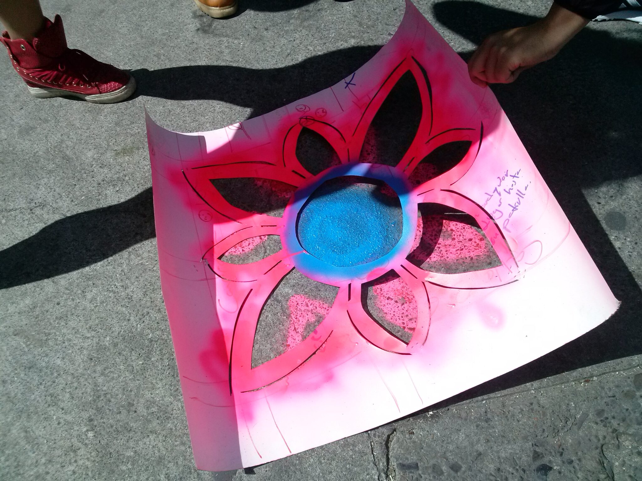 Sobre el pavimento, con pintura azul y rosada, quedaron hechos los símbolos floridos, como un testimonio de los crímenes que en varios puntos del barrio sucedieron y que brutalmente cegaron vidas.