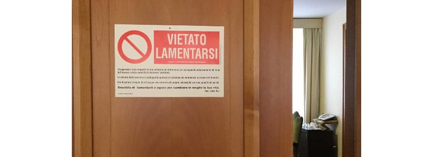 Elocuencia, buen humor e ironía. Estas tres cualidades bien pueden ser atribuidas al papa Francisco. Haciendo gala de su simpatía, desde hace unos días en la puerta de su habitación en Santa Marta puede leerse el siguiente mensaje: “Prohibido quejarse”.