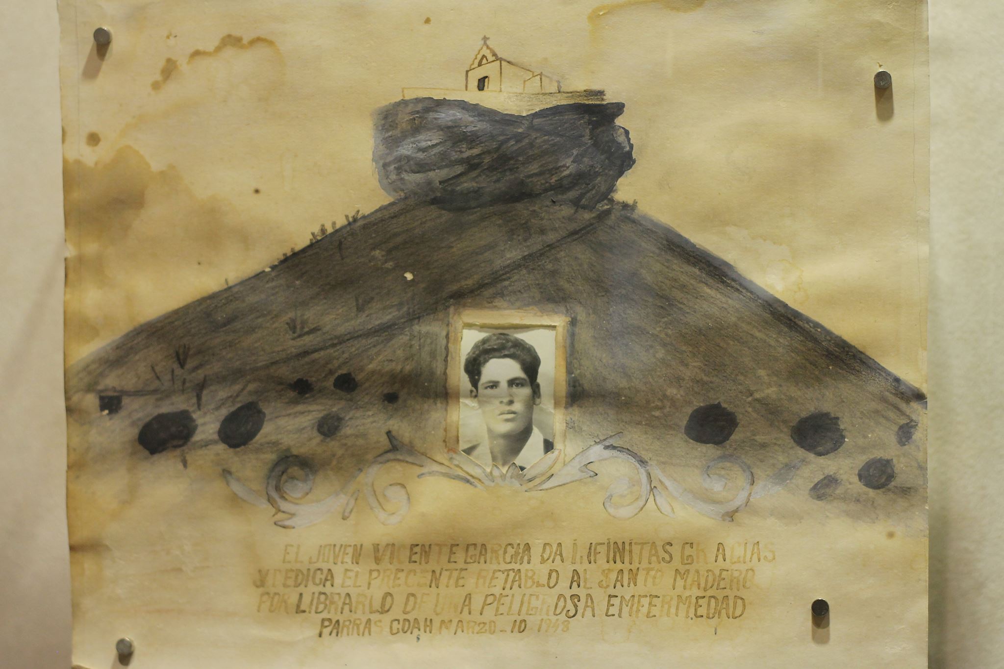 La exposición “Exvotos de Parras, historias de fe de un Pueblo Mágico” se exhibe en la Galería de la Secretaría de Cultura de Coahuila, en la zona centro de Saltillo, desde el pasado 11 de julio y hasta el 30 de septiembre próximo.