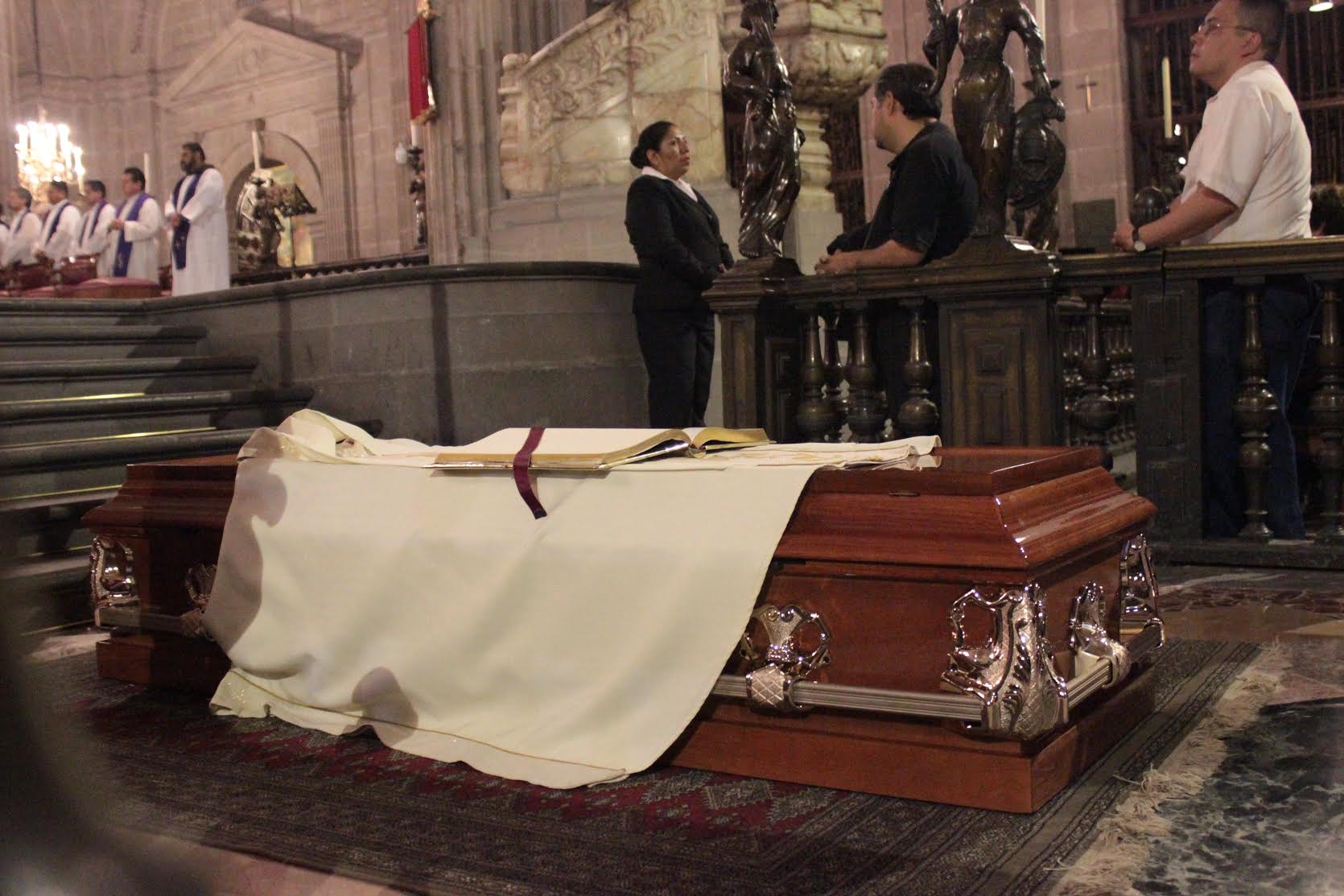 Familiares y amigos del padre Machorro ocuparon los primeros lugares para permanecer cerca del féretro, sobre el cual se colocó la casulla y la estola doradas, así como el libro de los Evangelios.