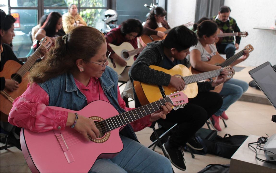 Explica que se trata de un curso-taller de 20 sesiones de 2 horas para el aprendizaje de la armonía básica y el desarrollo de técnicas de guitarra popular. “Cada lección lleva a los participantes a la aplicación de lo aprendido en un tema musical del repertorio de nuestra fe. Así, desde la primera lección ya están tocando un canto”, dijo.
