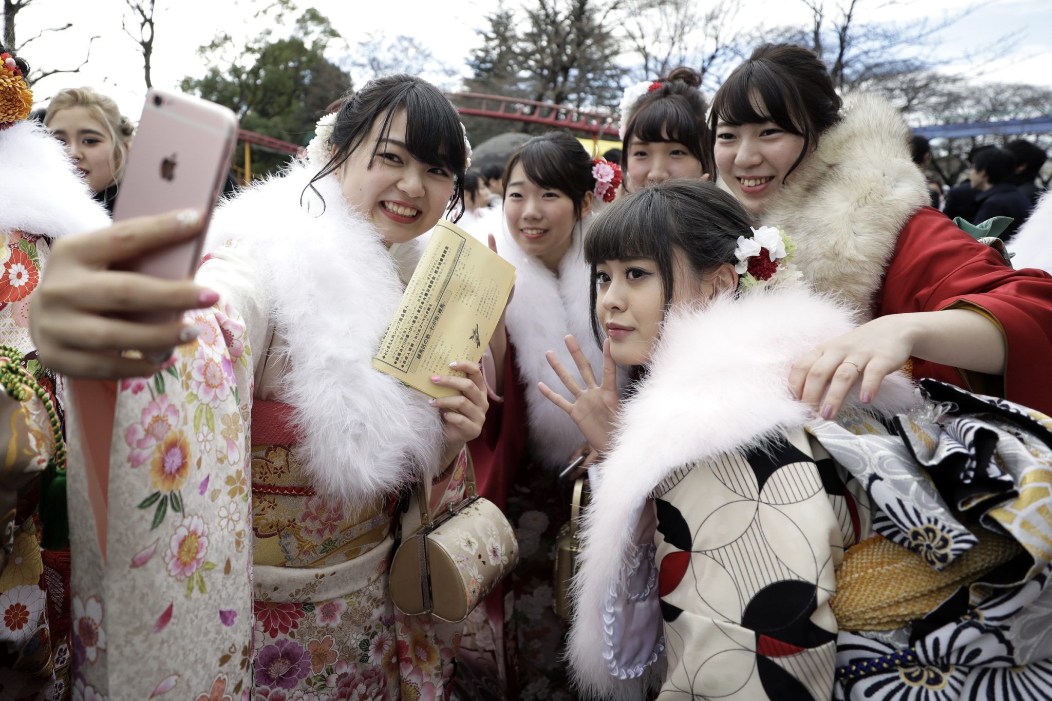 Jóvenes católicas asiáticas se hacen un selfie en el marco de la JMJ asiática