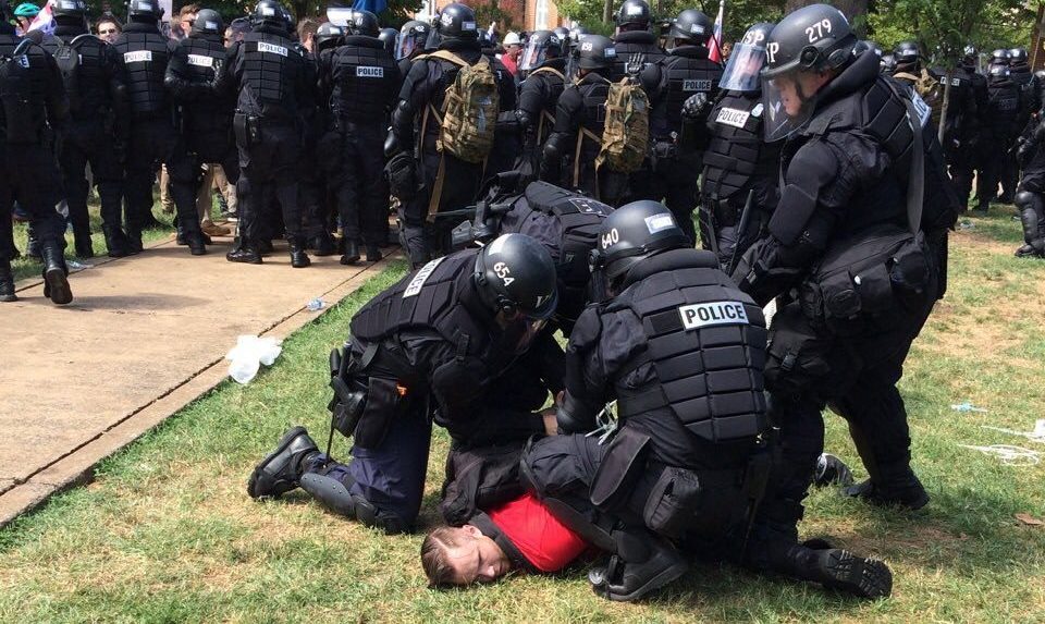 La policía reduce a un manifestante de una marcha racista en Charlottesville(Virginia)/EFE