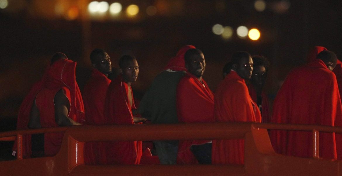 Llegada al puerto de Almería de los 26 inmigrantes de origen subsahariano, el 7 de agosto de 2017/EFE