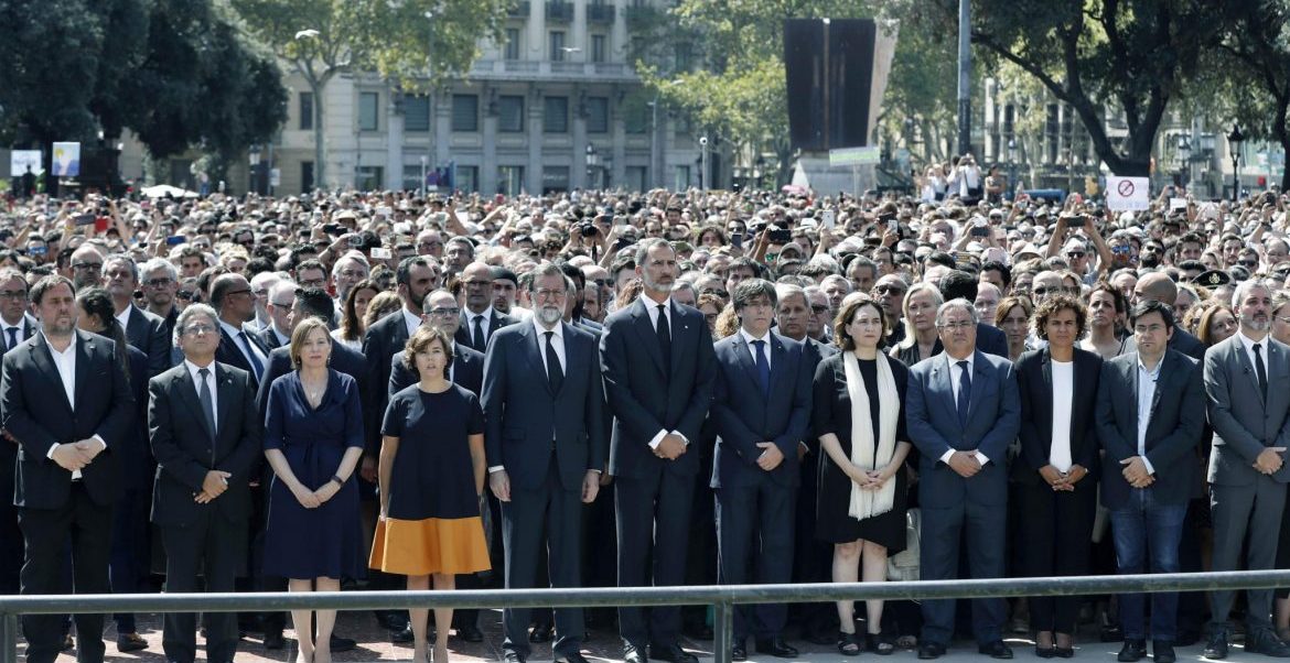 Entre las autoridades al frente de la concentración, el Rey Felipe VI, el presidente del Gobierno Mariano Rajoy, el presidente catalán Carles Puigdemont y la alcaldesa barcelonesa Ada Colau. Todas las instituciones del Estado lanzaron juntos un mensaje de unidad a través de un minuto de silencio que se contagió por toda España. También se encontraba, entre otros, la vicepresidenta del Gobierno, Soraya Sáenz de Santamaría, la presidenta del Parlament, Carme Forcadell, el ministro del Interior, Juan Ignacio Zoido, y el delegado del Gobierno en Catalunya, Enric Millo, entre otros.