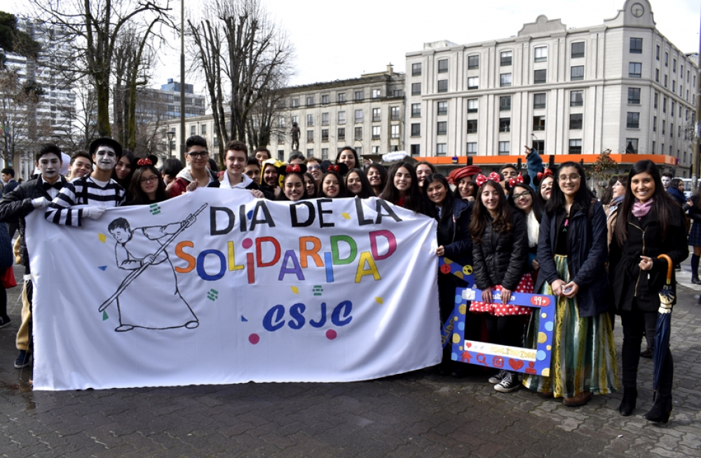 En el ofertorio los estudiantes donaron cajas con alimentos y útiles de aseo personal, para las obras sociales de la Iglesia. Después de la Eucaristía, recorrieron las calles y galerías del centro de Concepción, difundiendo mensajes de solidaridad y pensamientos de san Alberto Hurtado.