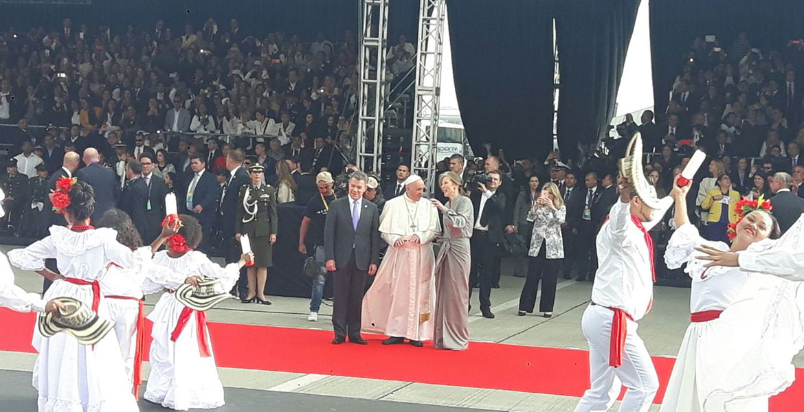 Ni el huracán Irma ha sido capaz de impedir a Francisco llegar puntualmente a la base militar CATAM de Bogotá, hoy miércoles 6 de septiembre, en su 20º viaje apostólico fuera de Italia.