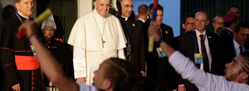 Hoy, Francisco ha recibido de los niños y de los jóvenes una ruana (prenda autóctona de la sabana cundiboyacense), así como un velón y un vitral, hechos con sus manos. “No dejen que nadie les robe la alegría ni la esperanza”, les dijo, agradeciéndoles sus detalles.
