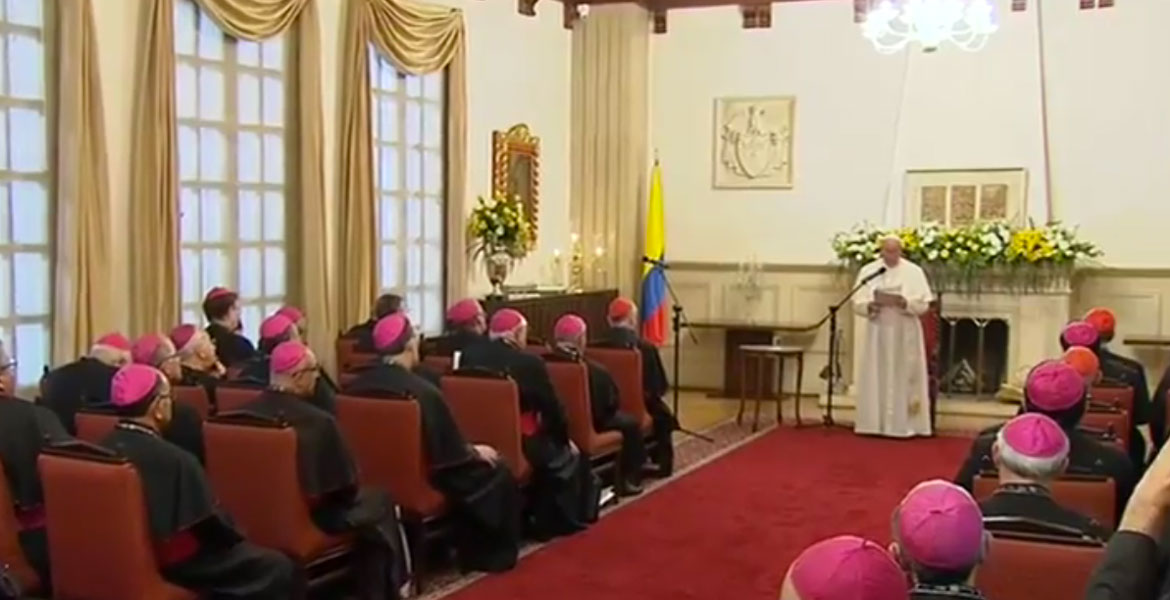 Hoy jueves 7 de septiembre, el encuentro de Francisco con las directivas del CELAM se inició a las 14:45 hora local, 20 minutos antes de lo previsto en la agenda de su viaje apostólico a Colombia, y tuvo lugar en la Nunciatura Apostólica, en Bogotá. “De no haber sido por las exigencias de la agenda, hubiera querido encontrarlos en la sede del CELAM”, ha dicho a casi 50 obispos del Comité General de Coordinación que han estado reunidos desde el pasado lunes 5 en la capital colombiana, evaluando y proyectando la misión de la institución que es “referencia vital para la comprensión y la profundización de la catolicidad latinoamericana”, como ha referido el propio Francisco.