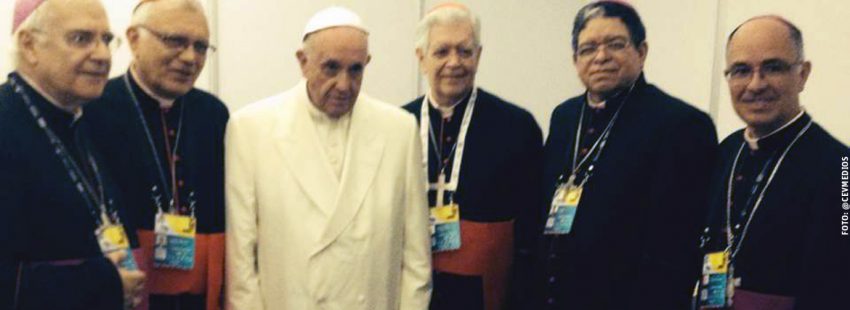Ya en tierra colombiana, Bergoglio acaba de tener otro importante gesto. Tras la celebración de la misa presidida por él en el Parque Simón Bolívar, en Bogotá, ha querido mantener un encuentro con la Ejecutiva del Episcopado venezolano, que había concelebrado con él junto a muchos otros prelados latinoamericanos. Concretamente, se han visto con el Papa los cardenales Jorge Urosa y Baltazar Porras, presidentes honorarios de la institución; José Luis Azuaje, primer vicepresidente; Mario Moronta, segundo vicepresidente; y Jesús González de Zárate, obispo auxiliar de Caracas.