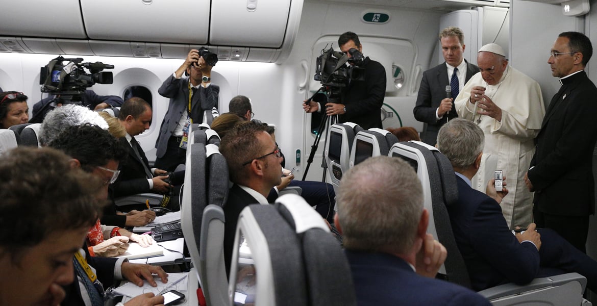 A lo largo de casi 40 minutos, el papa Francisco ha dialogado con los periodistas durante el viaje de regreso de Colombia, hoy lunes 11 de septiembre. En su saludo a la prensa, el Pontífice se ha mostrado “conmovido por la alegría, la fuerza, la juventud, de la nobleza del pueblo colombiano”.