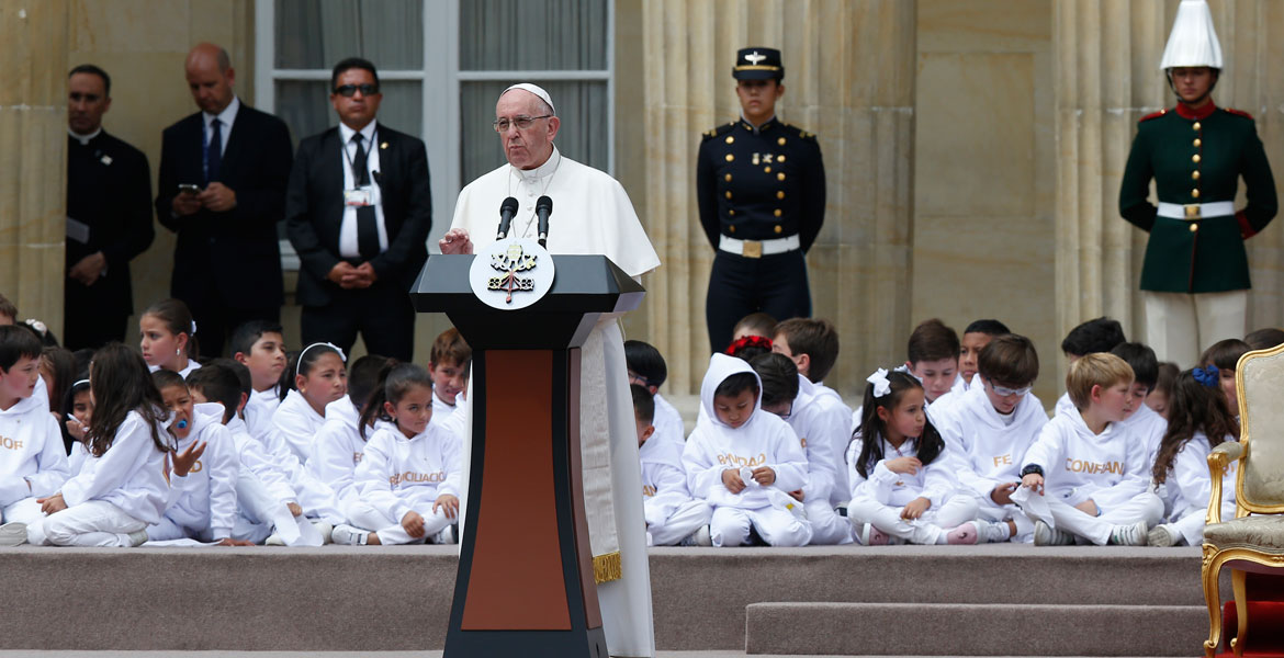 6.- “Los invito a no tener miedo de tocar la carne herida de la propia historia y de la historia de su gente (…). Colombia tiene necesidad de su mirada propia de obispos, para sostenerla en el coraje del primer paso hacia la paz definitiva, la reconciliación”.