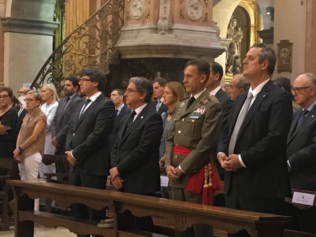Ante él, además de buena parte de los obispos de la Conferencia Episcopal Tarraconense, que arroparon al arzobispo, el presidente del Govern, Carles Puigdemont, y el delegado del Gobierno en Cataluña, Enric Millo. Uno de los pocos momentos, o quizá el único, en el que se ha podido ver juntos a miembros del Gobierno central y el catalán.