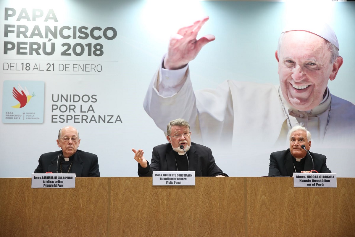 Aún con la incertidumbre por esa controversia, los peruanos siguen con entusiasmo preparándose para recibir al Papa. Los obispos Norberto Strotmann, secretario general de la Conferencia Episcopal Peruana(CEP) y coordinador general de la visita papal, y Miguel Cabrejos, vicepresidente de la CEP y coordinador de medios para la visita, presentaron el lema Unidos por la esperanza y el logo que expresa en dos manos la unidad del pueblo peruano con el color rojo y del Vaticano en el amarillo. Incluye “el mapa del Perú junto a la fotografía del Sumo Pontífice como expresión de la cercanía del Papa con nuestro pueblo y la unidad que debemos tener como país para su recibimiento”, expresaron los obispos.