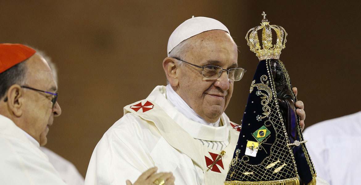 Francisco con una imagen de la Virgen de Aparecida, durante su viaje a Brasil en 2013