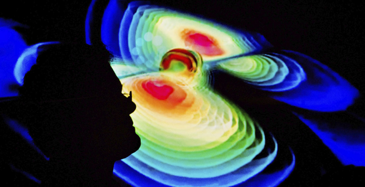 Un científico observa una representación de las ondas gravitacionales