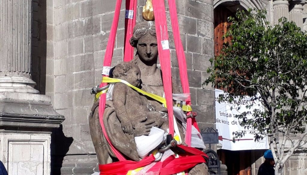 Más de 12 horas duró el retiro de las esculturas tituladas ‘La Fe’ y ‘La Caridad’, como una medida precautoria tomada por las autoridades federales, luego de que ‘La Esperanza’ colapsara durante el terremoto del pasado 19 de septiembre.