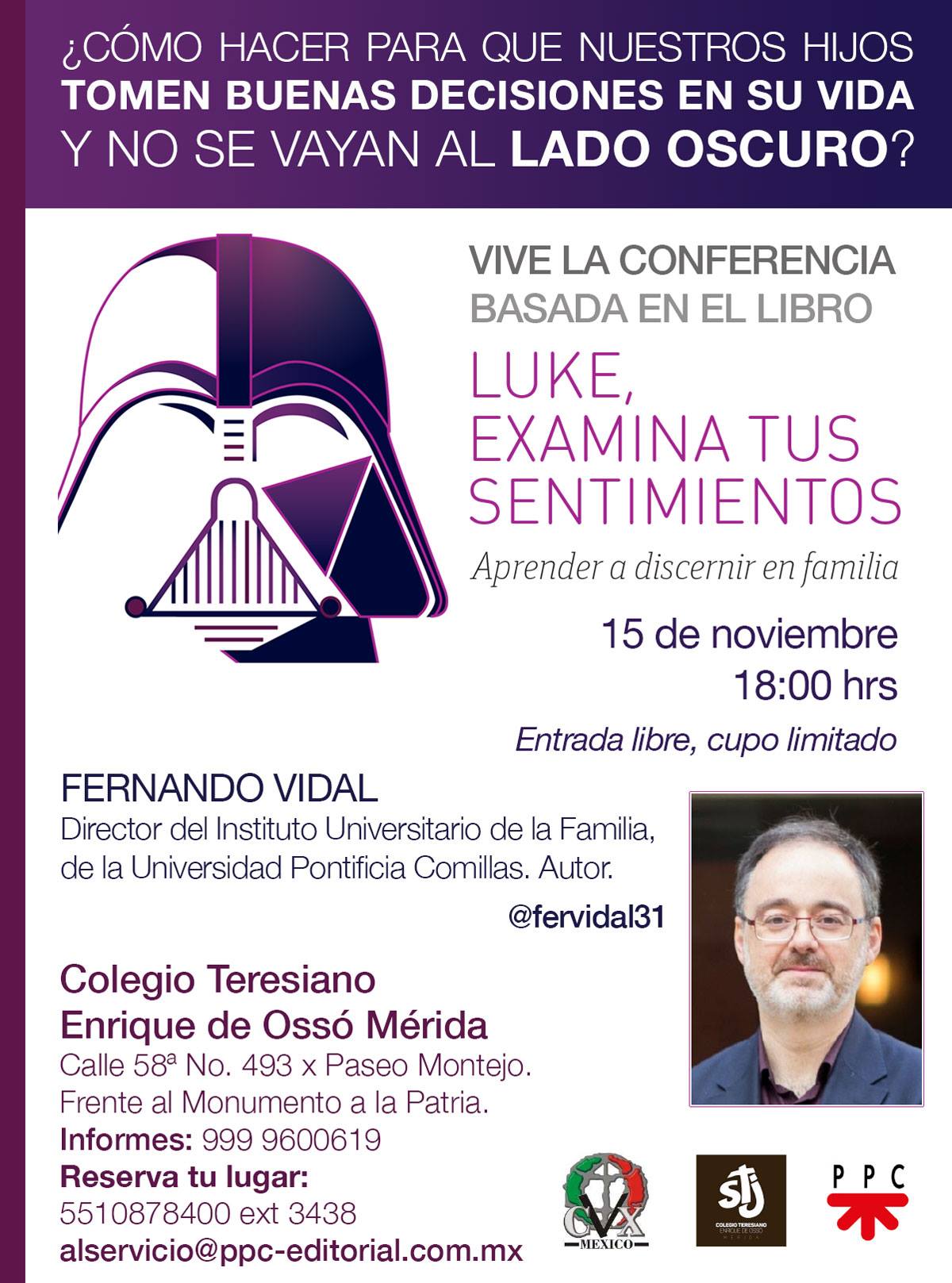 En entrevista para Vida Nueva Digital, Fernando Vidal se refirió a su libro Luke, examina tus sentimientos, el cual constituye una guía para mejorar el discernimiento en familia, capacitándola para viajar por las “galaxias de la vida”. Al respecto, Vidal explicó que la idea de escribir este libro surgió fundamentalmente ante el déficit de discernimiento que existe en las familias.