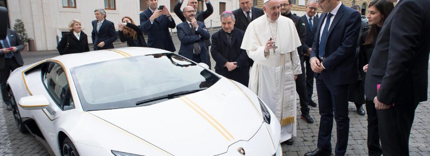 Antes de dirigirse a la Plaza de San Pedro para mantener la audiencia general, el papa Francisco ha sido obsequiado con un coche Lamborghini Huracan, una edición especial del coche deportivo que la casa automovilística italiana le ha regalado.