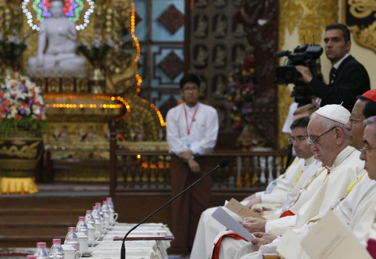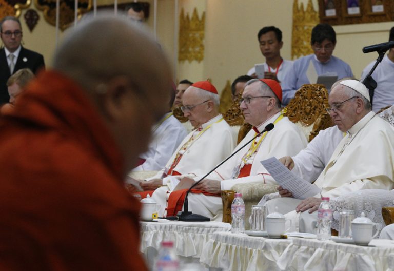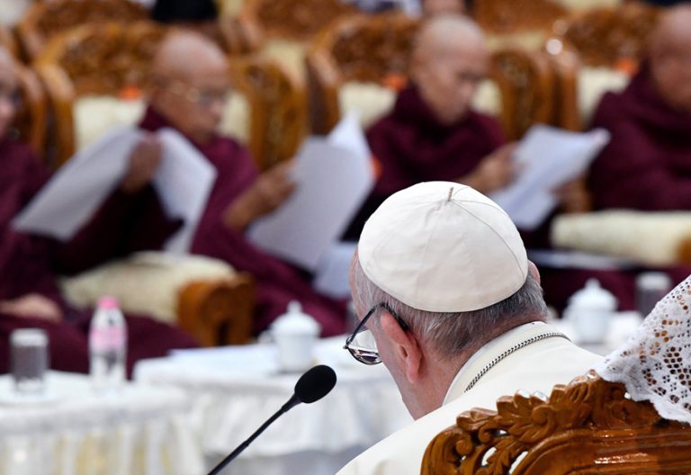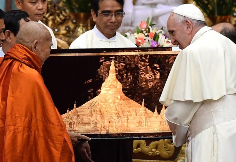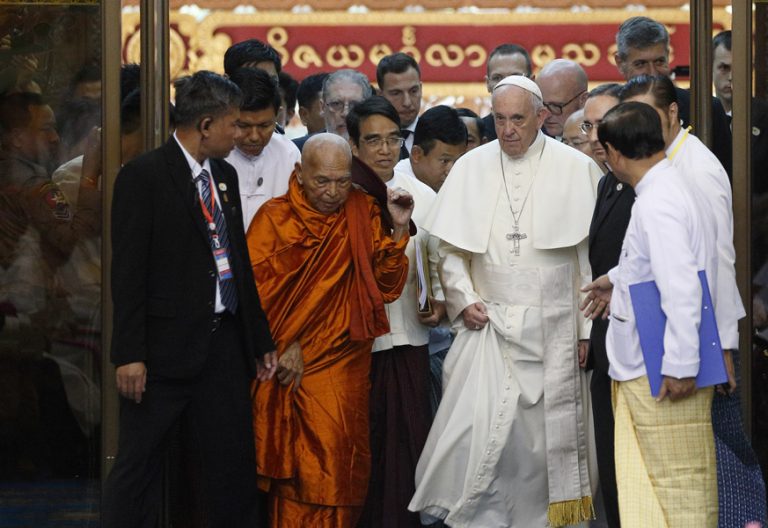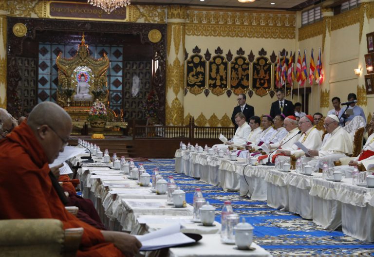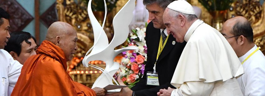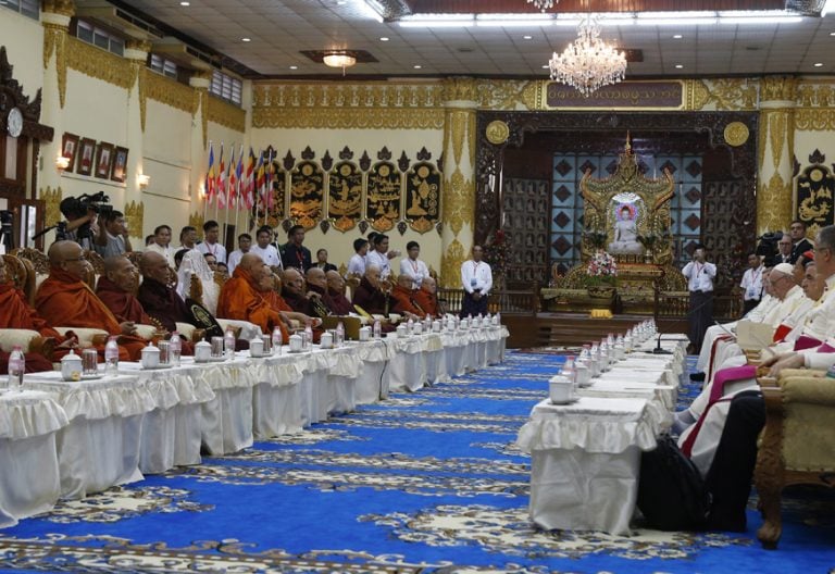 En el tercer día de su viaje apostólico a Myanmar, y después haber presidido la misa esta mañana en el estado deportivo Kyaikkasan Ground hoy, miércoles 29 de octubre (a las 8:30 hora local, 3 h. de la madrugada en España), el papa Francisco ha empezado la tarde reuniéndose con el Consejo Supremo, o ‘Sangha’, de los monjes budistas en Myanmar.