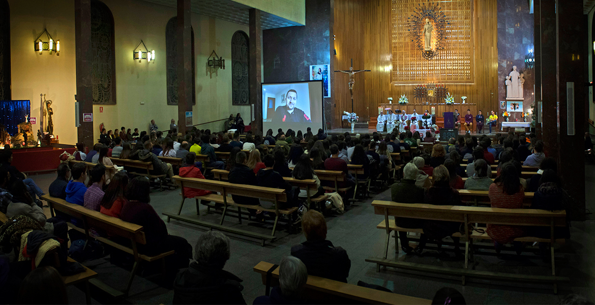El templo parroquial de María Auxiliadora de Atocha acogió este encuentro litúrgico en el que José Luis Villota, delegado para la Pastoral Juvenil  de la provincia salesiana de Santiago el Mayor, recordó los palabras del papa Francisco en Myanmar cuando señaló que el amor de Jesús “revelado en la cruz, en definitiva, nadie lo puede detener. Es como un GPS espiritual que nos guía de manera inexorable hacia la vida íntima de Dios y el corazón de nuestro prójimo”. También invitó a todos “no solo a rezar por los jóvenes sirios, sino con ellos que también forman parte del movimiento salesiano gracias a la unión que ofrece la oración”. De hecho, durante la celebración, en conexión con un grupo de jóvenes sirio, se rezó de manera conjunta el Padre nuestro.