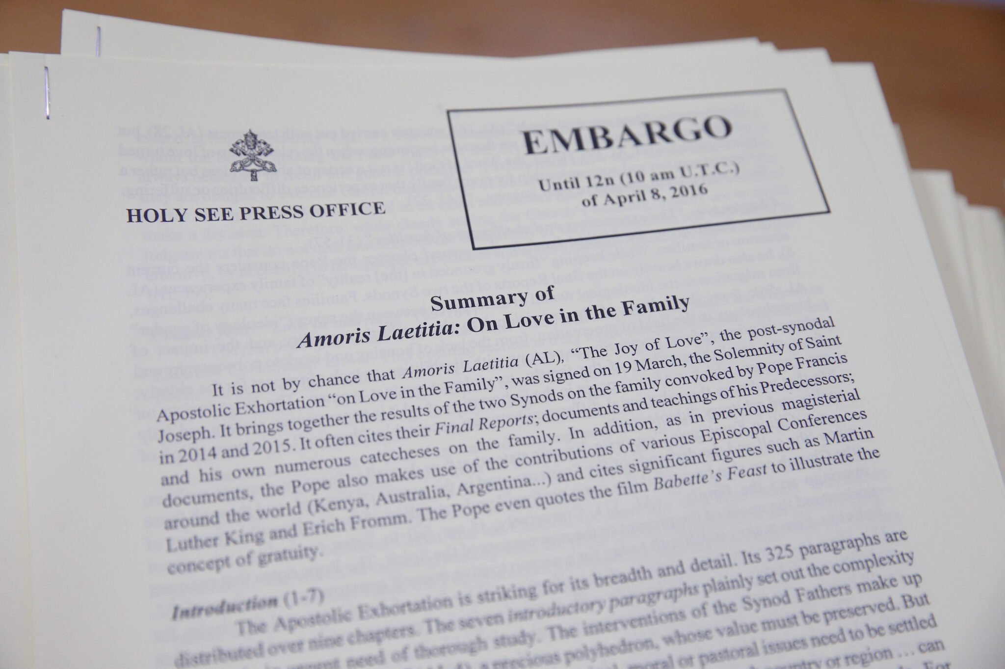 Imagen del texto embargado de la exhortación Amoris Laetitia