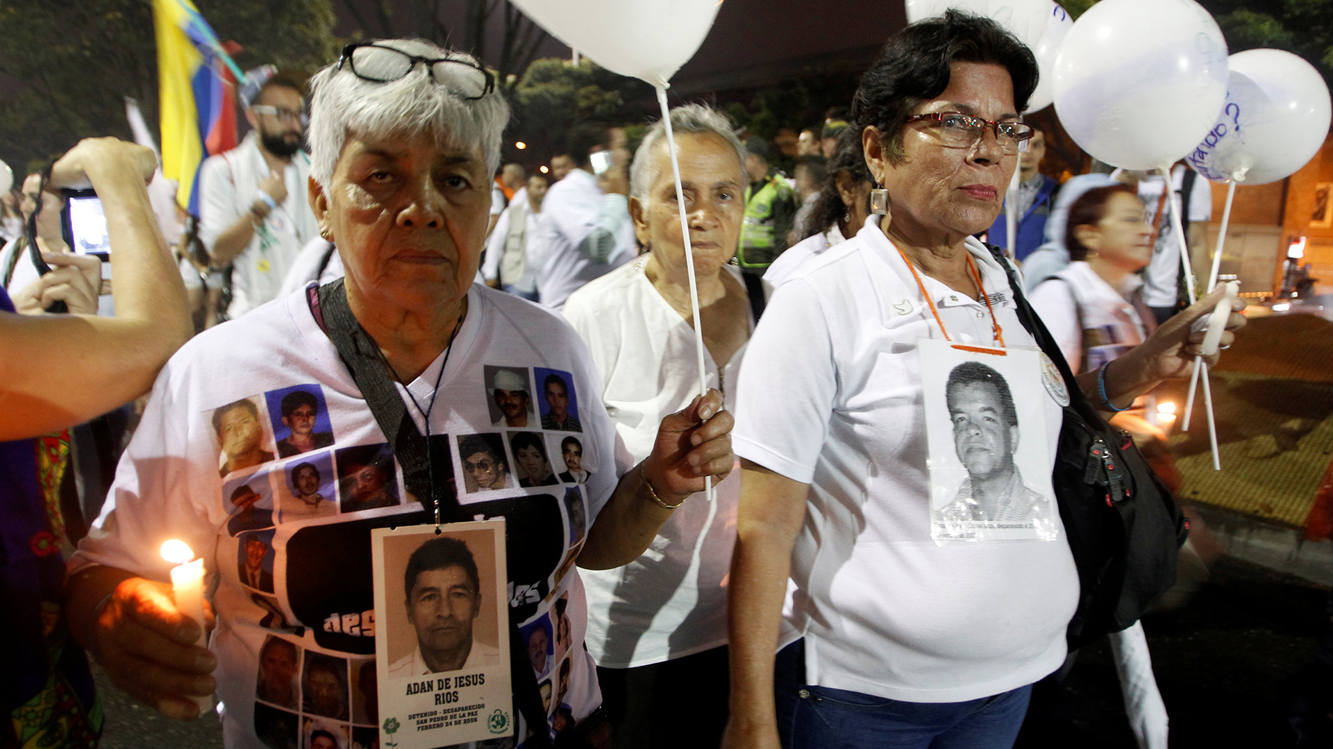 Photos of missing victims and victims of murder and conflict are displayed as Colombians in favor of peace march through the streets of Medellin, Colombia, October 7, 2016. REUTERS/Fredy Builes