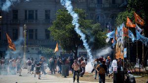 Mientras tanto, militantes del kirchnerismo y de la izquierda, se lanzaron a violentar las calles creando un caos en el centro porteño. A su vez, las fuerzas de seguridad, armaron un fuerte operativo para responder a los manifestantes. Treinta detenidos, muchísimos heridos de los dos “bandos”, en un escenario que no cambia: piedras, autos quemados, camiones hidrantes, gases lacrimógenos y balas de goma.