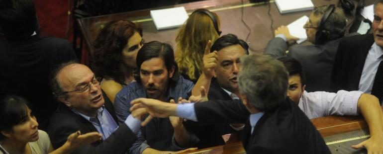 El bochornoso clima dentro del recinto se dio entre gritos, chicaneos e improperios. Lamentablemente también se dio un fuerte cruce entre uno de los líderes de la oposición, Leopoldo Moreau y el Presidente de la Cámara de Diputados, Emilio Monzó, en el que hubo insultos y manoteos.