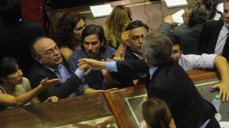 El bochornoso clima dentro del recinto se dio entre gritos, chicaneos e improperios. Lamentablemente también se dio un fuerte cruce entre uno de los líderes de la oposición, Leopoldo Moreau y el Presidente de la Cámara de Diputados, Emilio Monzó, en el que hubo insultos y manoteos.