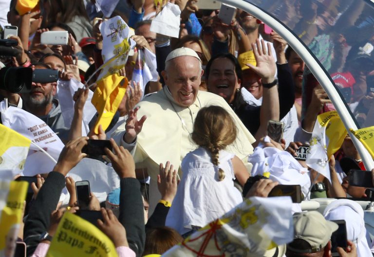 El mensaje de esperanza que es uno de los ejes de esta visita apostólica lo ha fijado Francisco en esta intervención: “[Jesús] viene a extirpar la inmovilidad paralizante del que cree que las cosas no pueden cambiar, del que ha dejado de creer en el poder transformador de Dios Padre y en sus hermanos, especialmente en sus hermanos más frágiles, en sus hermanos descartados. Jesús, al proclamar las bienaventuranzas viene a sacudir esa postración negativa llamada resignación que nos hace creer que se puede vivir mejor si nos escapamos de los problemas, si huimos de los demás; si nos escondemos o encerramos en nuestras comodidades, si nos adormecemos en un consumismo tranquilizante”.