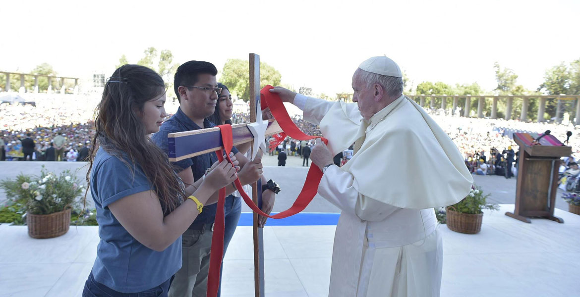 De vuelta en Santiago de Chile tras la visita a Temuco, el miércoles 17 de enero, Francisco se reunió con los jóvenes chilenos en el Santuario de Maipú.