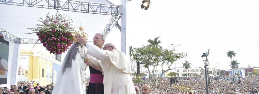 Después del acto con los consagrados, el Papa se dirigió a la Plaza de Armas de Trujillo, para participar en el último acto previsto en la ciudad peruana: una celebración en honor a la Virgen de la Puerta. Desde ahí, el Pontífice condenó sin paliativos la violencia machista. “Mirando a las madres y a las abuelas, quiero invitarlos a luchar contra una plaga que afecta a nuestro continente: los casos de feminicidio”, sentenció el Papa que invitó a los asistentes a la oración comunitaria a “luchar contra esta fuente de sufrimiento pidiendo que se promueva una legislación y una cultura de repudio a toda forma de violencia”.