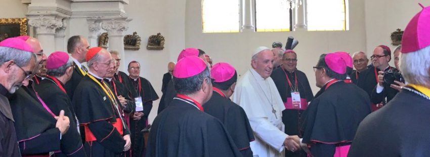 Antes del Ángelus y de la Misa de clausura, el Papa se reunió con los obispos peruanos en el Palacio Arzobispal de Lima. Al inicio de su discurso, Francisco resaltó el lema elegido por los organizadores para el viaje, que invita a la unidad y la esperanza. Fue el punto de partida para admitir “un programa arduo y provocador, que nos evoca las proezas de santo Toribio de Mogroviejo”.