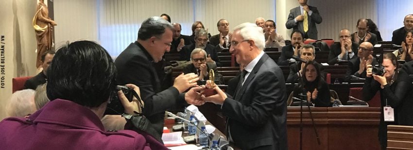 “El papa Francisco habla en cristiano para que le entienda la señora María, y la señora María le entiende”. De esta manera resumía el ser y hacer de la comunicación eclesial Julián del Olmo, el periodista y sacerdote que en la mañana de hoy lunes 22 de enero recogía el Premio ¡Bravo! Especial 2017, concedido por la Comisión de Medios de Comunicacion de la Conferencia Episcopal Española. El acto contó con la presencia, entre otros, del nuncio Renzo Fratini y los cardenales Carlos Osoro y Carlos Amigo.