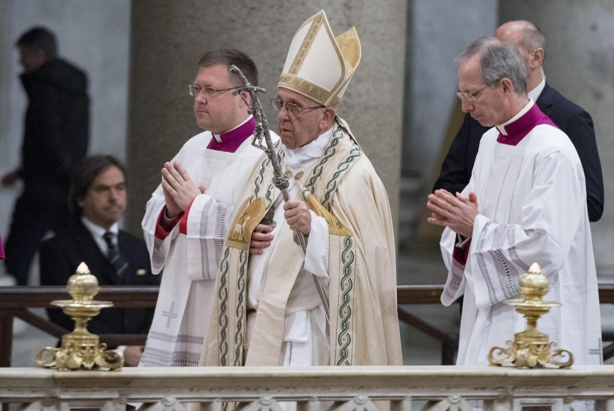 EPA6219. ROMA (ITALIA), 25/01/2018.- El Papa Francisco celebra las Vísperas con los representantes de otras iglesias y comunidades cristianas, en la Basílica de San Pedro, Roma, Italia, hoy, 25 de enero de 2018. EFE/ Claudio Peri